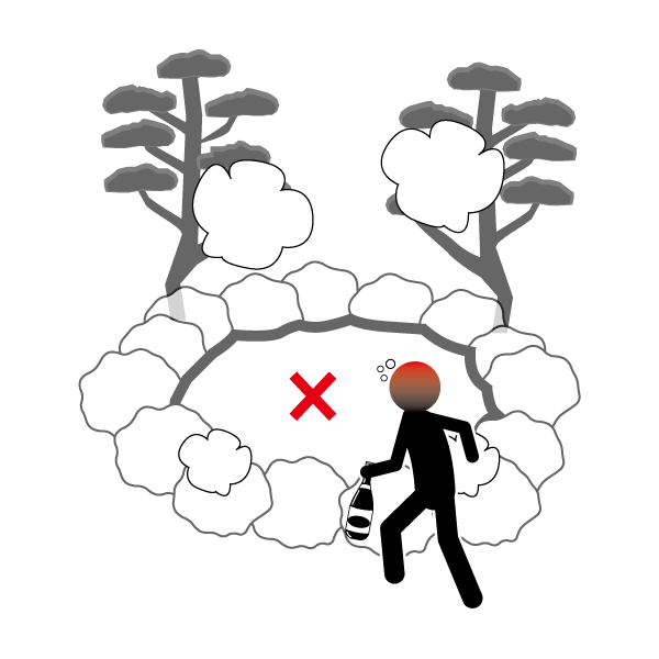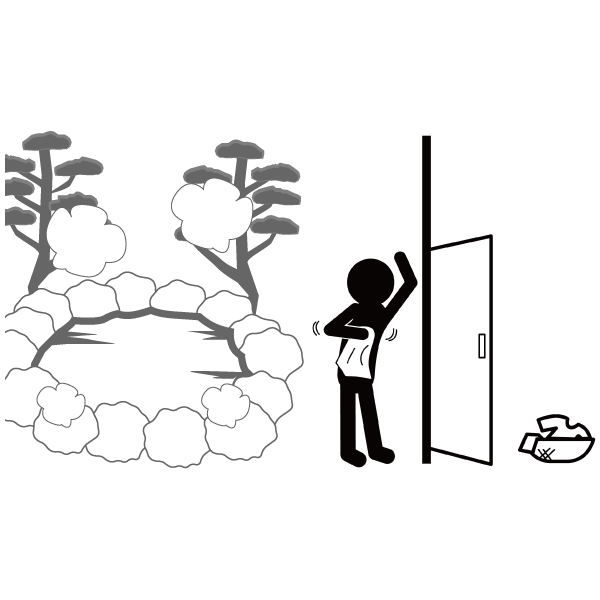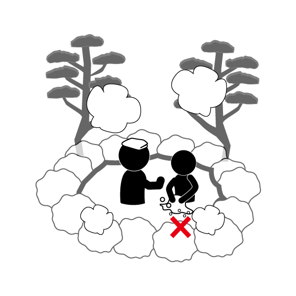 Keeping the bath clean is very important. Wash your body and rinse well before entering the bath. Be careful not to splash hot water around you. This keeps the bathwater clean for all guests.